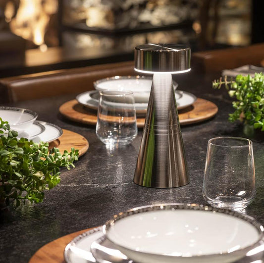 Elegantes lámparas recargables construidas para exigentes entornos de hostelería. Elija entre nuestra amplia variedad de estilos, que incluye 11 diseños atemporales y 6 acabados modernos para alinearse perfectamente con cualquier entorno.
